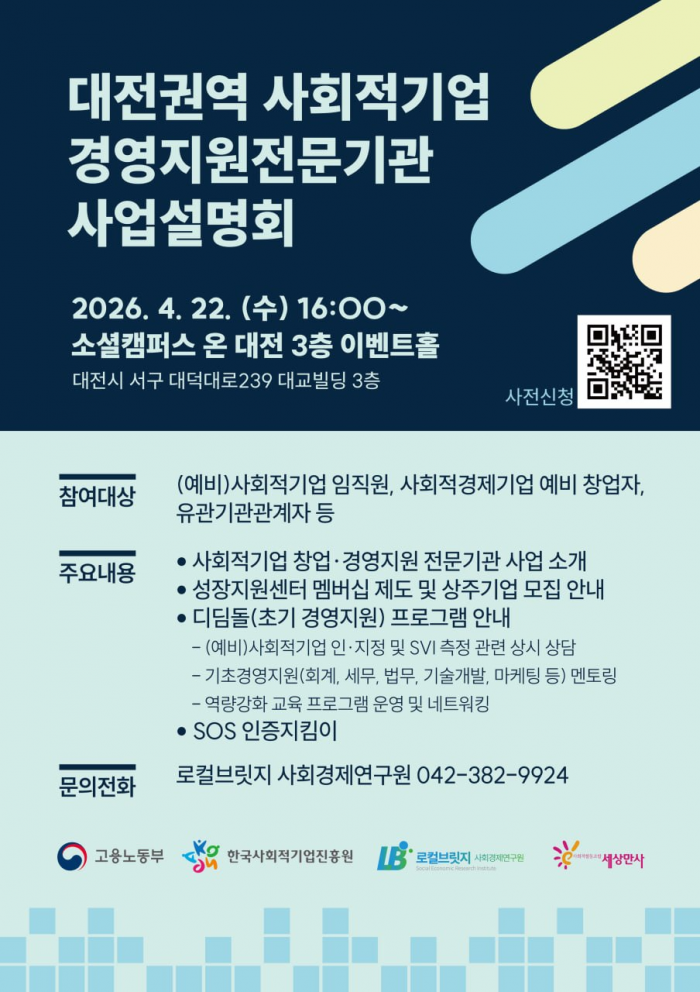 대전권역 사회적기업 경영지원전문기관 사업설명회(4월 22일 (수) 16시~)